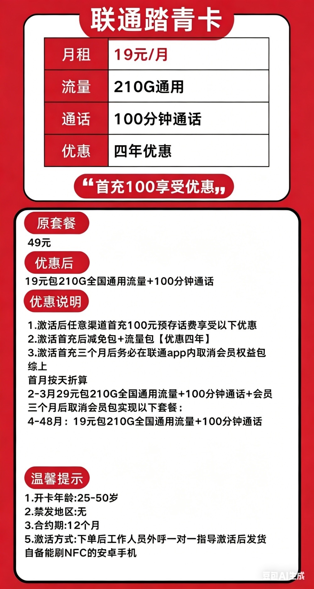 发全国,NFC激活,4年不变,25岁以下可以办理
